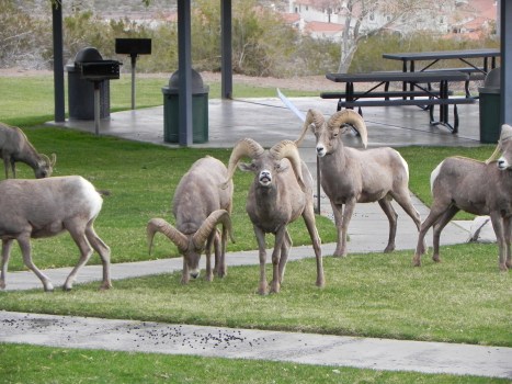 Sheep just wanna have fun – at the Boulder City playground.