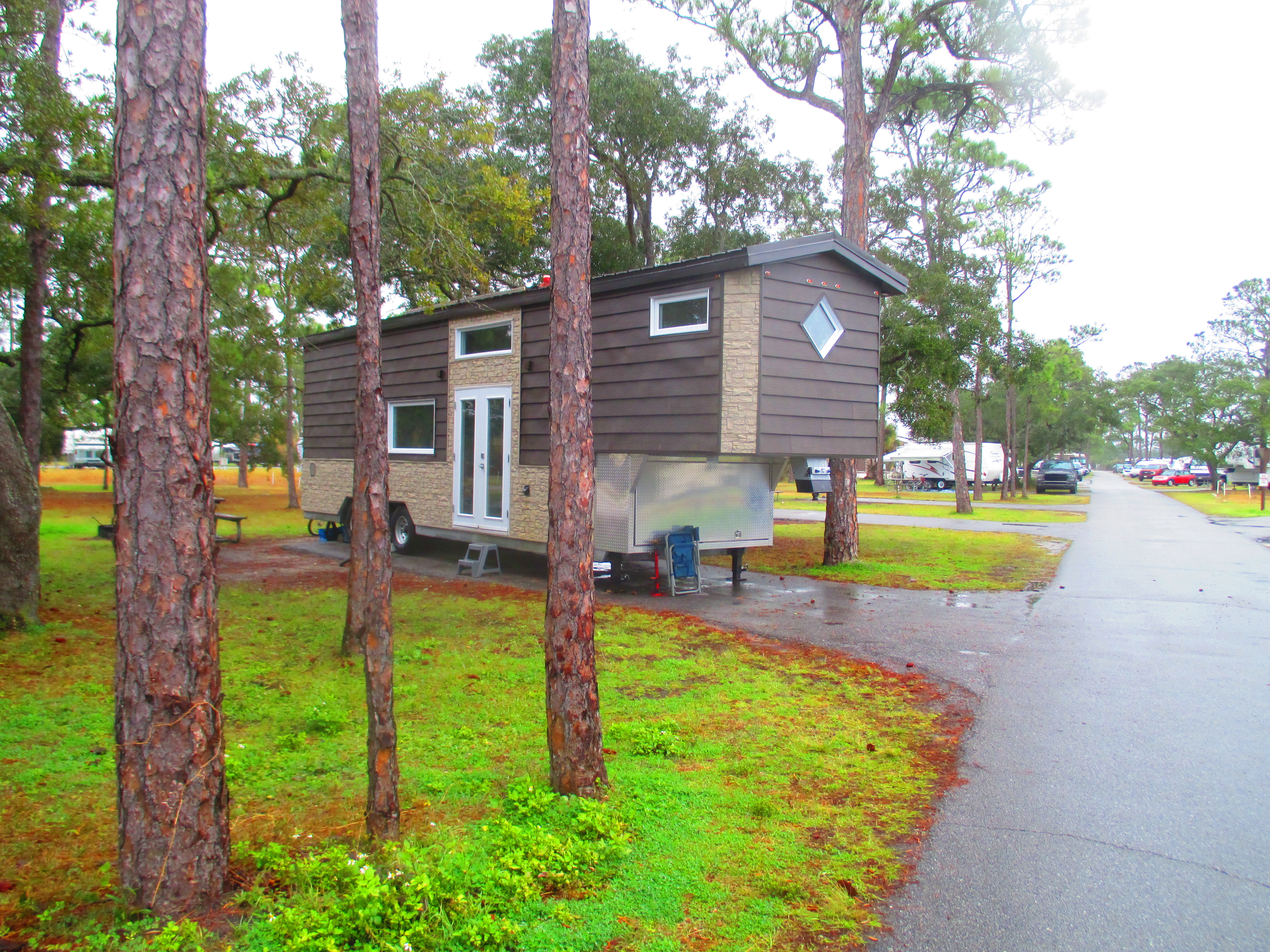 Previous Image Next Image IMG_3604 Unique fifth wheel camper- a tiny house! We saw it driving by, pulled by a Ford pick-up.